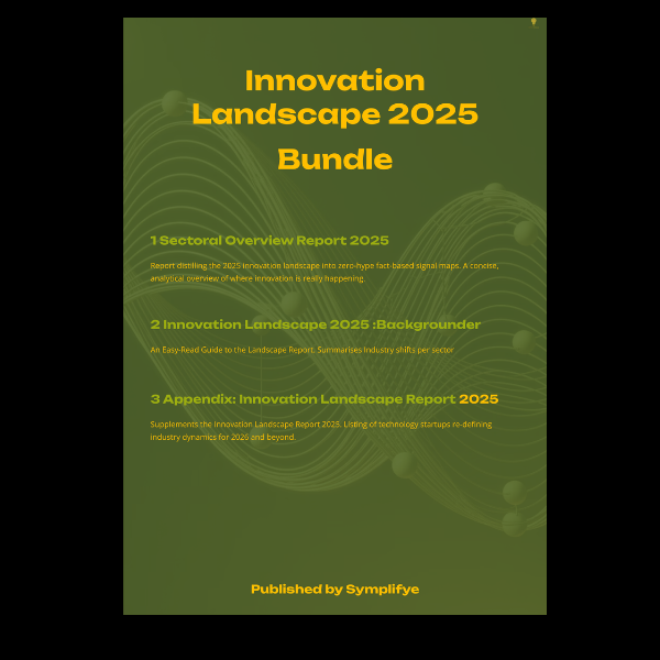 3-document pack combining the Innovation Landscape 2025 (sector overview) report, a plain-language companion guide for fuller context, and a startup intelligence directory for market-level visibility.